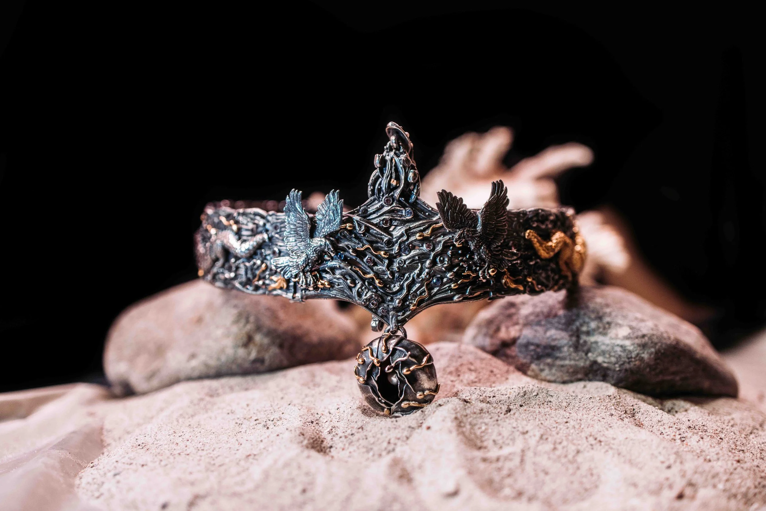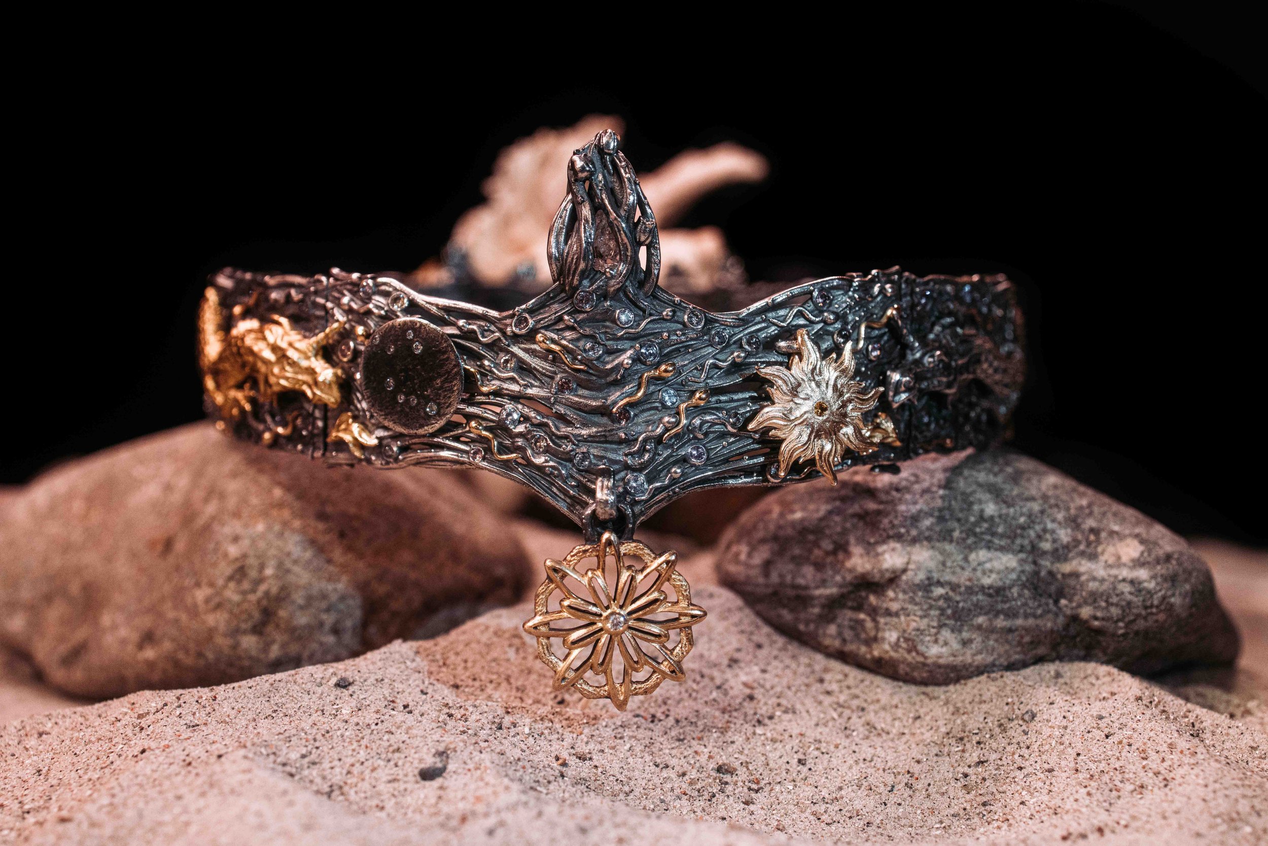 Adams tilgang forener traditionelt guldsmedehåndværk med sjælens sprog. Hvert element – fra dragerne til rosen, fra stjerneblomsten til sædcellerne – er opstået gennem en meditativ skaberejse, hvor symbolerne viste sig som levende visioner. Kronen er dermed både et fysisk kunstværk og et energetisk redskab, skabt i samarbejde med noget større.